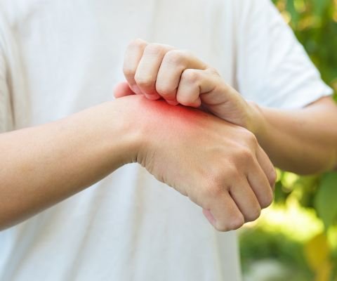 Manchas vermelhas na pele que coçam (urticária tardia)